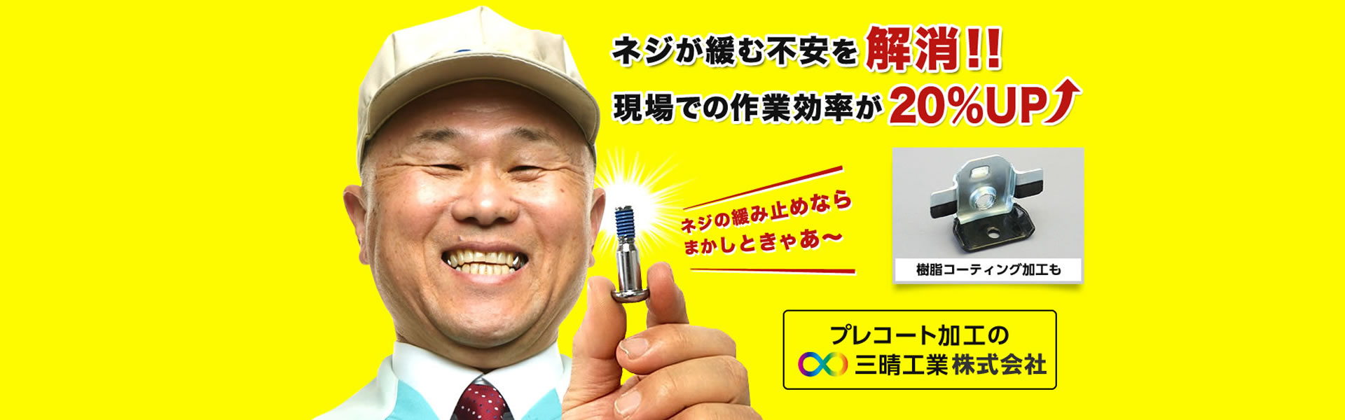 三晴工業株式会社では、ねじの緩み止め加工と樹脂コーティング加工を自動車部品を中心に創業から40年。